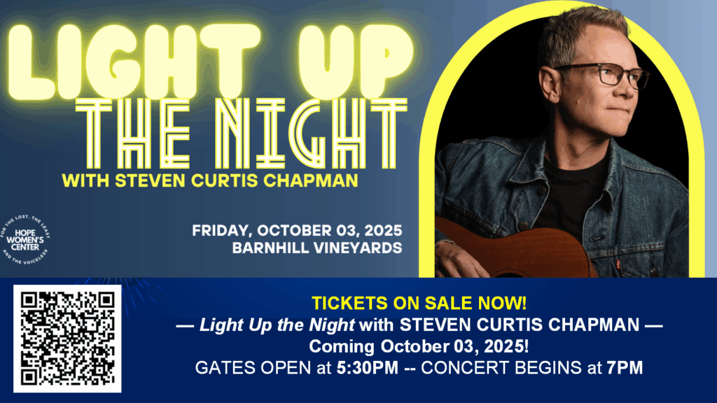 Great music under the stars with Steven Curtis Chapman! Tickets are on sale now. Proceeds support one of our missions, HOPE Women’s Center.